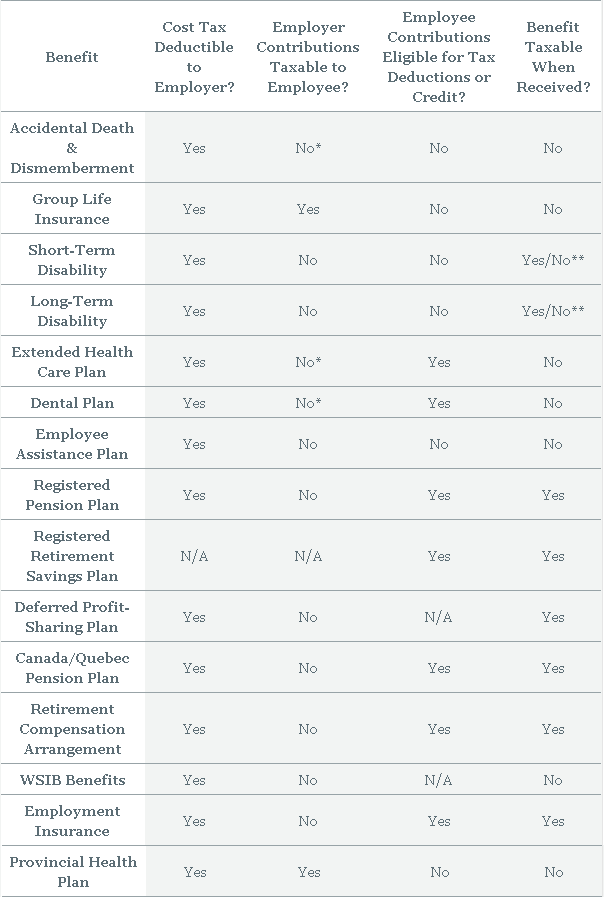 Taxation of Group Benefits